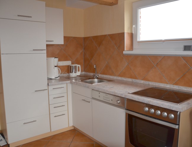 - Küchenzeile mit Kühl-Gefrier-Kombination, Spülmaschine, Backofen+Ceranfeld, Mikrowelle, Kaffeemaschine, Wasserkocher, Toaster